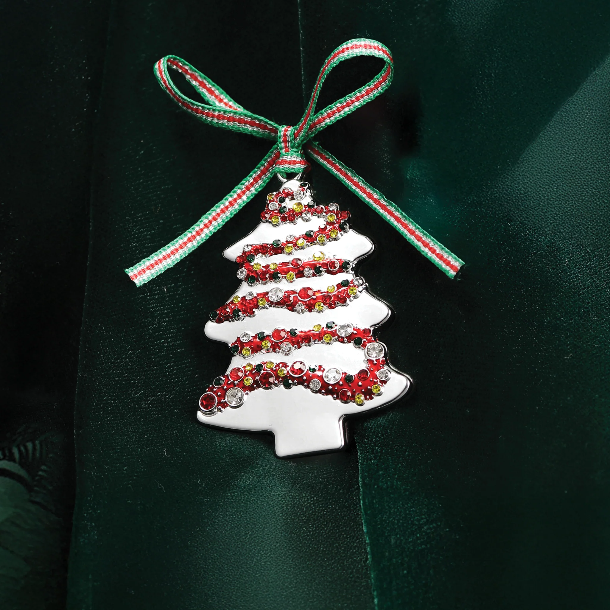 Brighten your festive season with this charming silver plated Christmas Tree Decoration with Coloured Stones from Newbridge Silverware. This stunning tree decoration is the perfect blend of elegance and festive colour, featuring vibrant coloured red, clear, yellow and green stones that will certainly add a touch of sparkle to your tree. Crafted with meticulous attention to detail, each stone is carefully selected to create a dazzling display that captures the magic of the season.