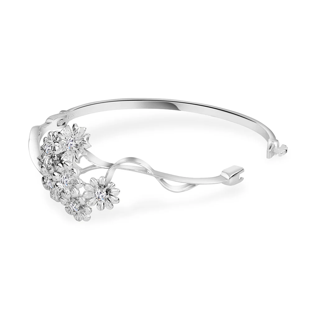 Silver Plated Floral Cluster Bangle