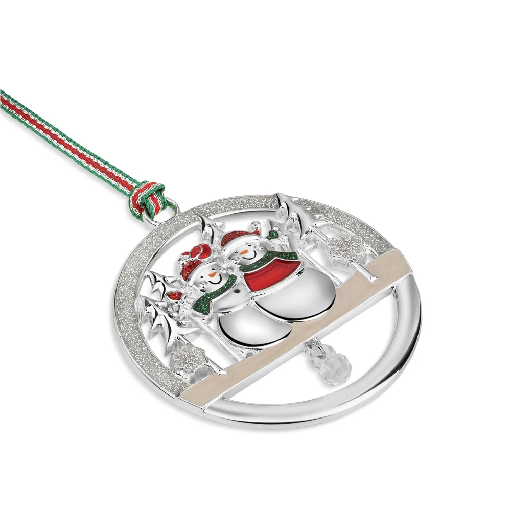 Capture the essence of Christmas with this adorable silver plated Snowman Couple tree Decoration from Newbridge Silverware. Featuring a snowman couple with added detail of coloured sparkle enamel in hues festive of silver, red and green guaranteed to bring a cheerful ambiance to your festive d‚Äöcor this year evoking nostalgic memories of traditional Christmas festivities.