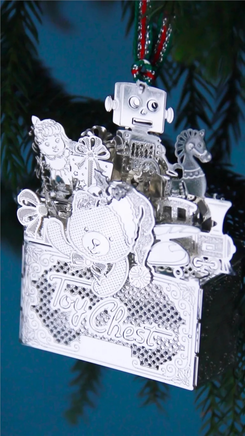 Complete your festive look with this silver plated toy chest Christmas tree decoration from Newbridge Silverware. Perfect for infusing a sense of playfulness to your festiveness this year making it an ideal great gift choice that is designed and finished to the highest of standards. This whimsical decoration comes presented in a Newbridge Silverware Christmas collection gift box, elegantly displayed making it an ideal token to present or receive during the festive and joyful season.